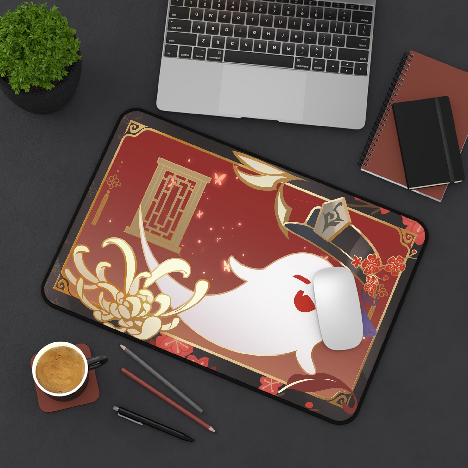 Hu Tao and Boo Tao Aesthetic Fanmade Namecard Inspired Genshin Impact Desk Mat Mousepad