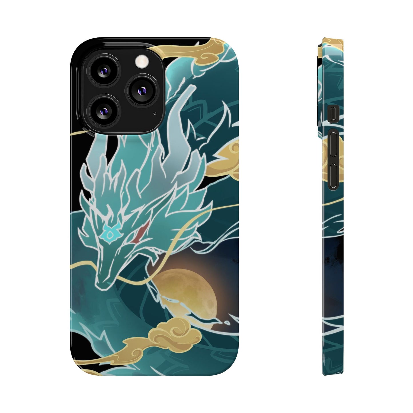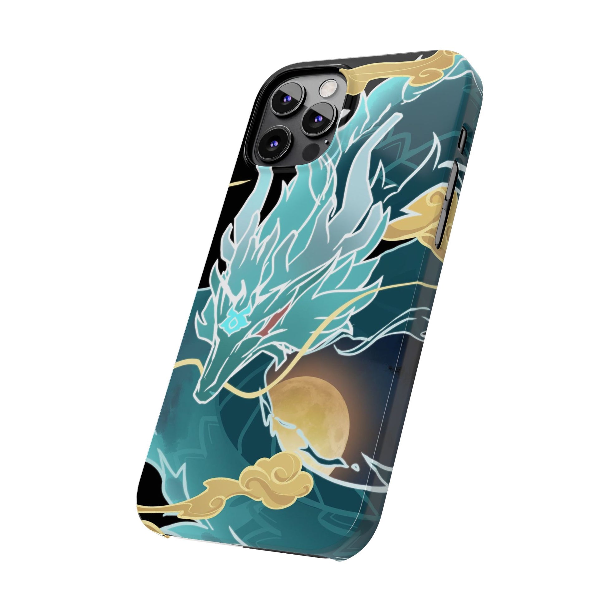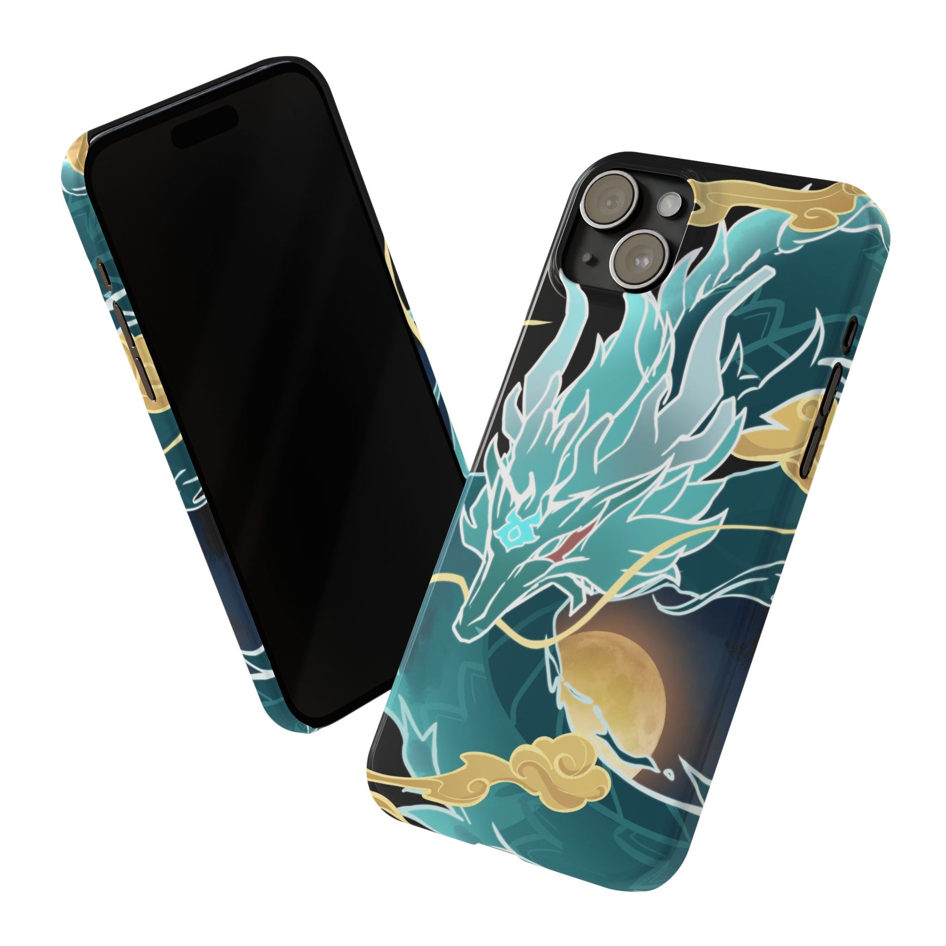 Glossy, slim, and flexible, here's a light phone case with my Imbibitor Lunae dragon design, uniquely drawn from scratch by me!