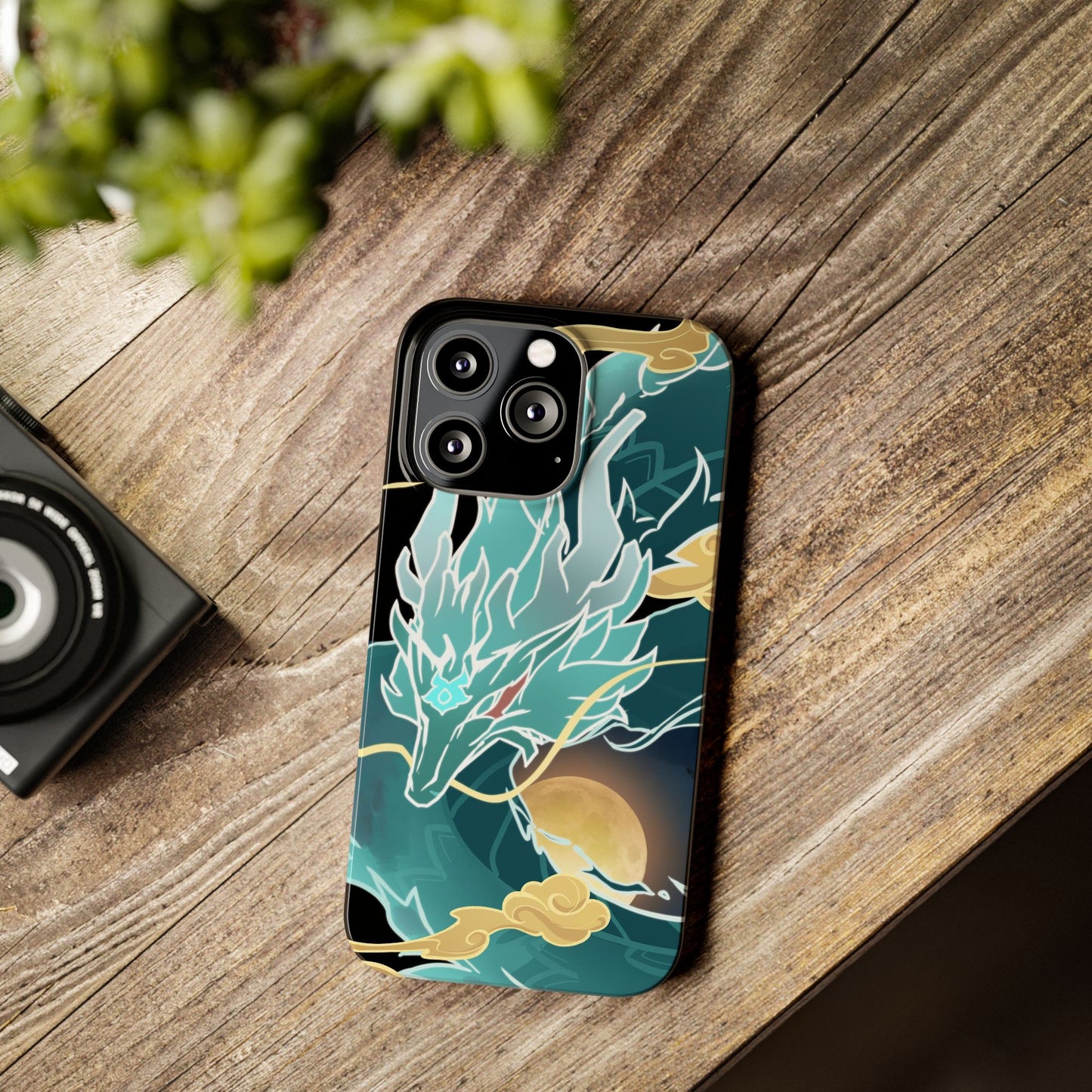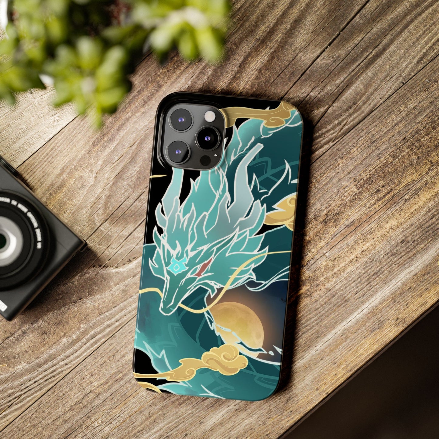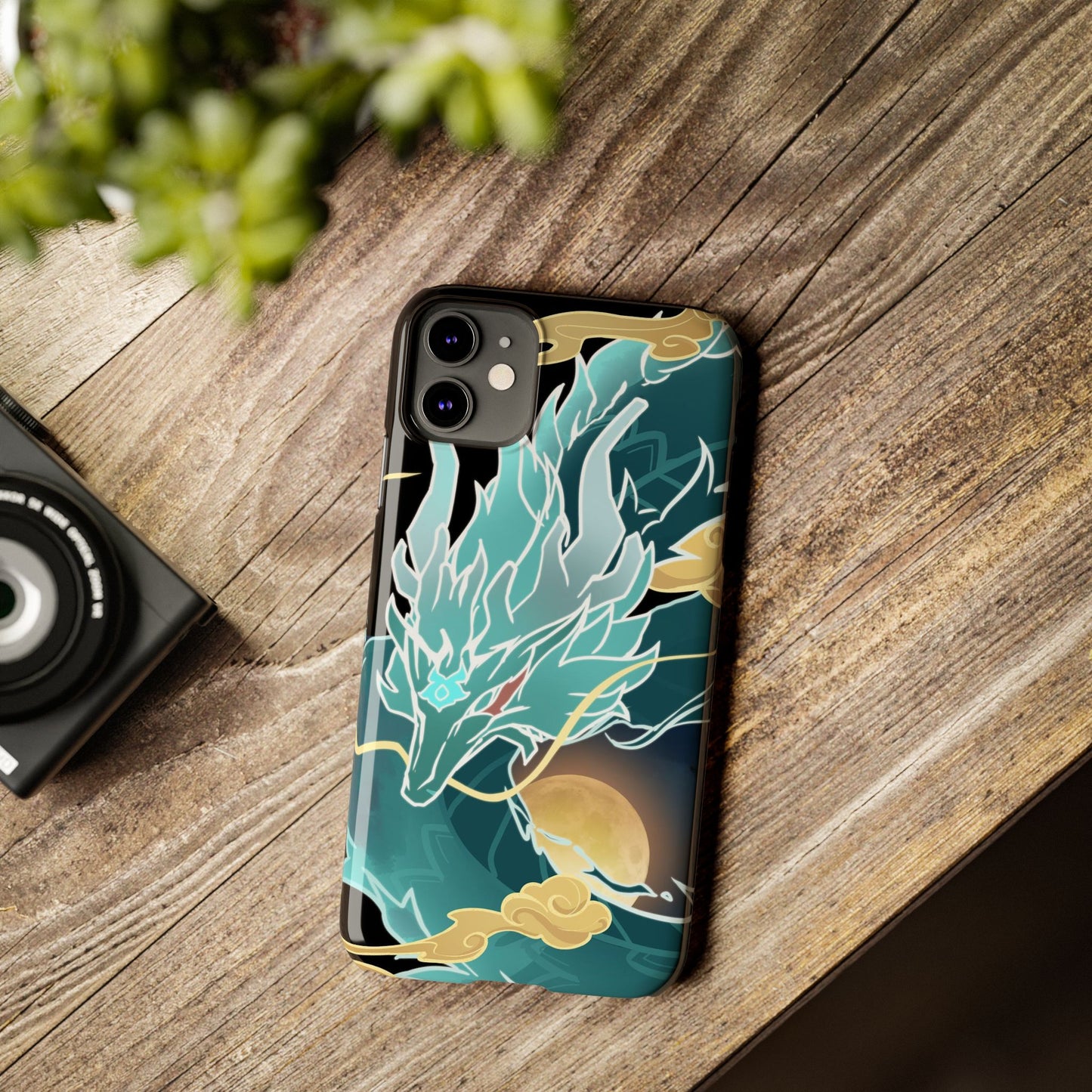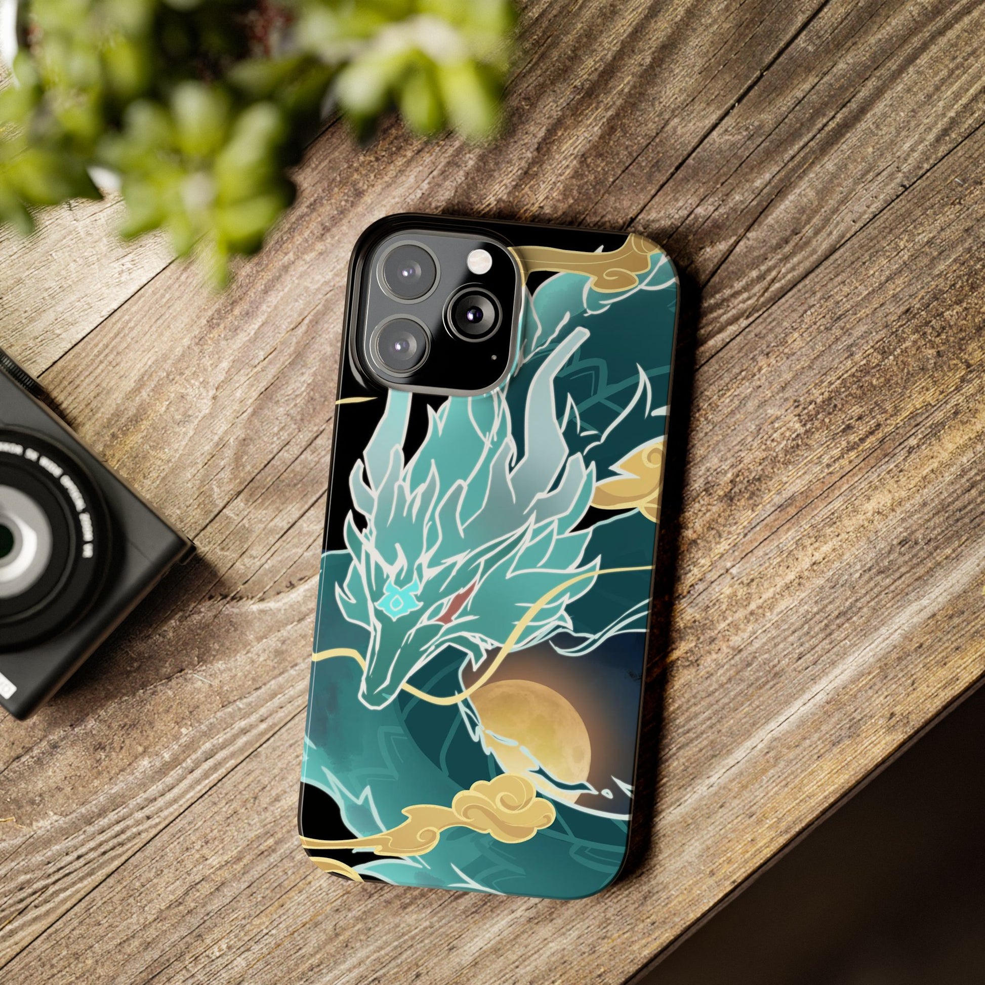 Glossy, slim, and flexible, here's a light phone case with my Imbibitor Lunae dragon design, uniquely drawn from scratch by me!